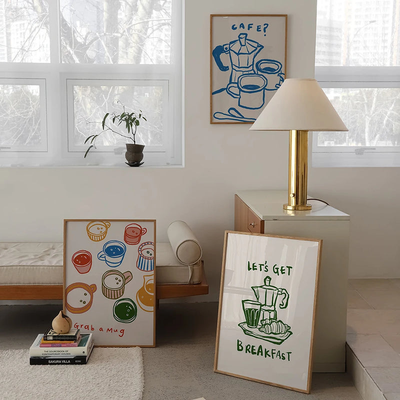 Les affiches murales que nous proposons sont inspirées du style scandinave, caractérisé par des lignes épurées et des couleurs douces. Avec leur design minimaliste, elles s'intègrent parfaitement dans une décoration moderne tout en apportant une touche vintage. Les illustrations de mugs, de verres et de bouteilles, soigneusement réalisées, évoquent une atmosphère détendue, où l'on aime passer du temps à déguster une tasse de café ou un verre de vin. Imaginez-vous, le matin, savourant votre café tout en étant inspiré par ces belles œuvres accrochées sur vos murs.