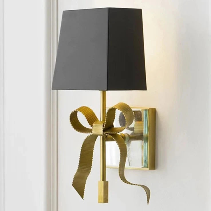 Cette applique murale est bien plus qu'un simple luminaire. Elle est une véritable pièce de décoration qui saura apporter du caractère à votre intérieur. Sa forme unique, où un nœud rétro en bronze se mêle à un ruban noir et or, fait d'elle un objet design hors du commun. Elle est fabriquée en métal avec une finition plaquée qui lui donne une brillance particulière. De plus, son abat-jour en tissu diffuse une lumière douce et chaleureuse qui apporte une ambiance cosy à votre pièce.