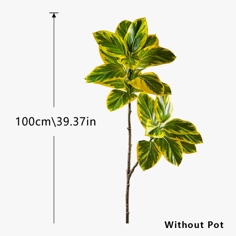 La branche de banyan artificielle se distingue par sa conception soigneusement élaborée. Les feuilles de magnolia, d'une teinte dorée subtile, ajoutent une touche chaleureuse et accueillante à votre décoration. Fabriquée en plastique de haute qualité, cette branche offre une simulation réaliste qui trompera même les yeux les plus avertis. Son aspect luxuriant et sa finition soignée en font un choix idéal pour ceux qui recherchent une décoration sans entretien, tout en conservant une esthétique naturelle.