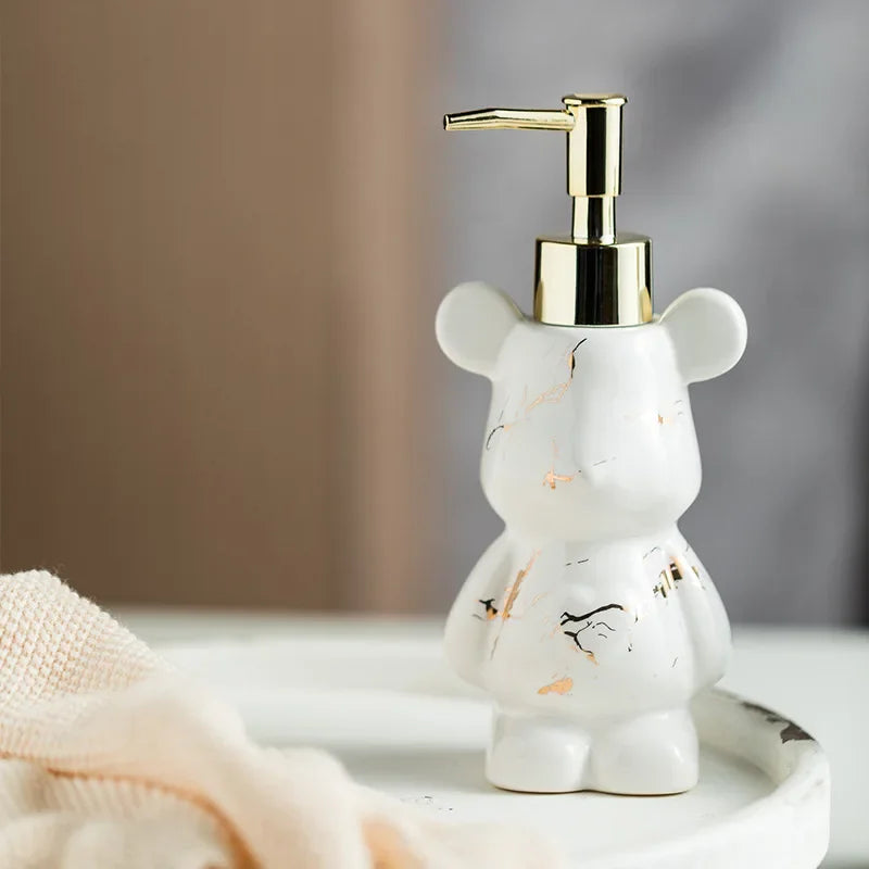 Distributeur de savon en céramique ourson marbré pour salle de bain