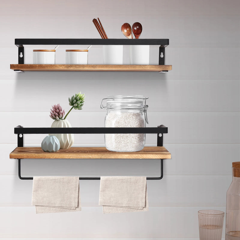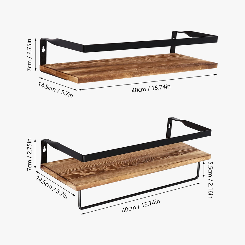 Nom du produit | Etagère murale en bois avec barre porte-serviettes pour rangement pratique |