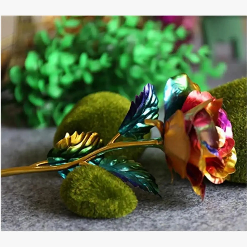 Imaginez cette rose scintillante reposant sur une table en bois dans votre salle à manger, créant un contraste saisissant entre le métal doré et les matériaux naturels. Dans le salon, elle peut être placée sur une étagère, ajoutant une touche d'élégance à votre décoration. Même dans un bureau, elle devient une pièce de conversation captivante qui ne manquera pas d'attirer l'attention de vos visiteurs.