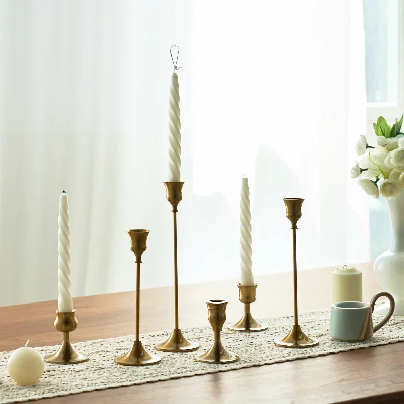 Le contraste entre la brillance du laiton doré et la flamme douce des bougies crée une ambiance intimiste, idéale pour les dîners romantiques ou les célébrations festives. Imaginez une table magnifiquement dressée, ornée de ces bougeoirs, où la lumière dansante des bougies ajoute une dimension chaleureuse à votre repas.