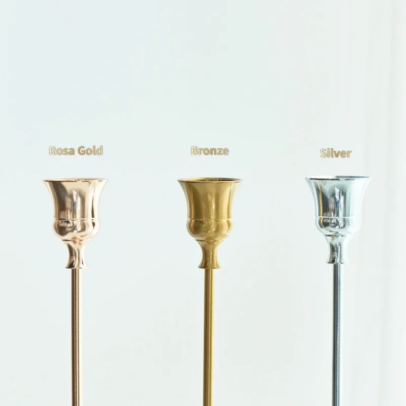 Kit de trois bougeoirs en laiton doré pour mariage et dîner