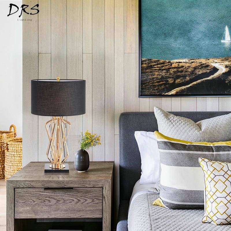 | Nom du produit | Lampe de chevet à pied design doré et abat-jour en tissu |