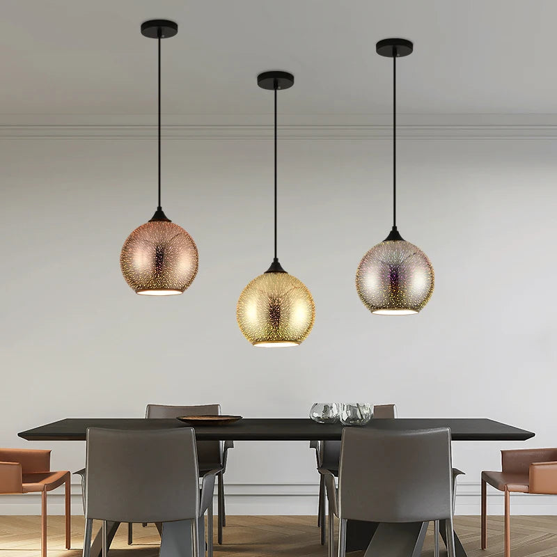 Lustre 3d en verre effet feu d'artifice led pour restaurant