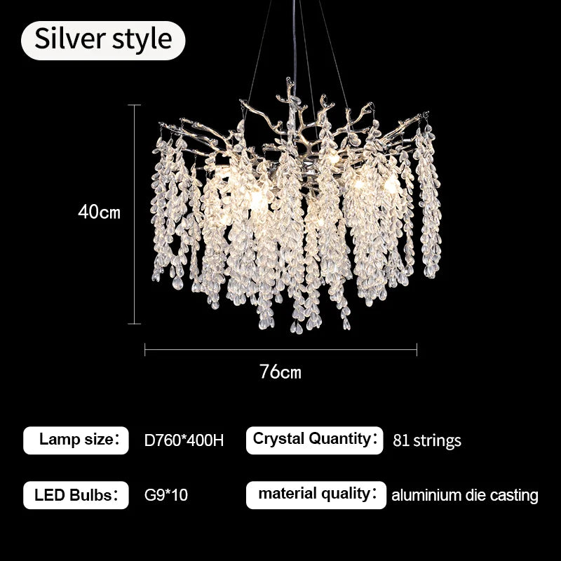 Fabriqué à partir de matériaux de première qualité, ce lustre à LED en cristaux garantit durabilité et longévité. La finition en nickel et la structure en cristal ne sont pas seulement esthétiques, mais également écologiques. Les ampoules LED, bien qu'elles ne soient pas incluses, sont faciles à intégrer, vous permettant d'opter pour des choix d'éclairage qui correspondent à vos besoins. Les ampoules LED sont connues pour leur faible consommation d'énergie et leur durée de vie prolongée, ce qui les rend idéales pour un éclairage durable.
