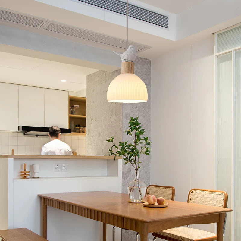 Nom du produit | Lustre led en bois avec abat-jour en verre blanc |