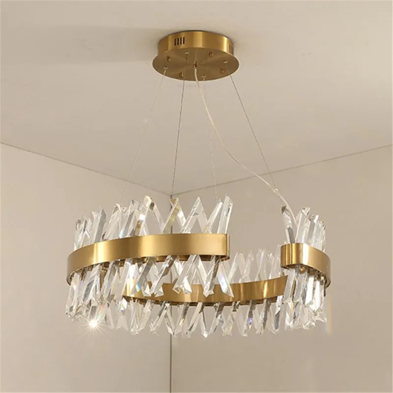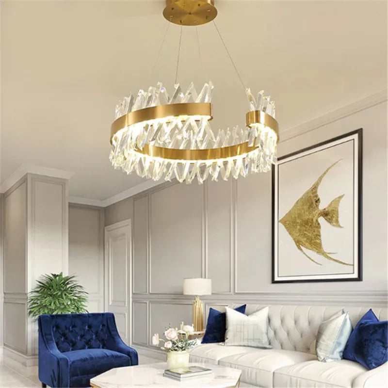 Lustre moderne en cristal doré éclairage led design élégant