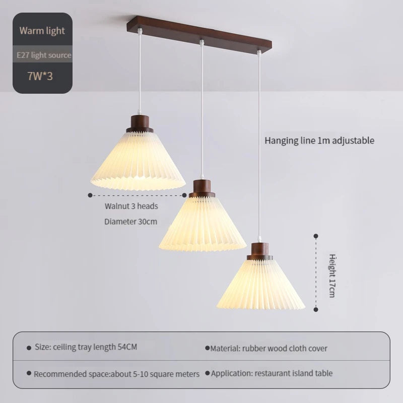 Lustre nordique moderne en tissu plissé avec base en bois