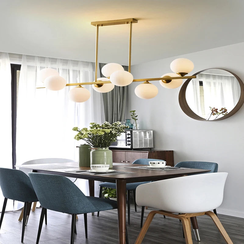 Le lustre suspendu en cuivre avec boule de verre est l'élément essentiel pour transformer votre décoration intérieure en un espace élégant et chaleureux. Ce luminaire allie à la perfection des matériaux de qualité et un design moderne, ce qui en fait un choix idéal pour ceux qui souhaitent illuminer leur maison avec style. Que vous souhaitiez embellir votre salon, votre chambre à coucher ou votre salle à manger, ce lustre saura s'adapter à toutes les ambiances.