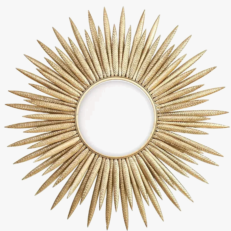 Le miroir mural en fer forgé arbore un motif de tournesol, symbole de chaleur et de convivialité. Sa forme ronde et ses détails en relief lui confèrent une dimension unique, créant un effet 3D captivant. Fabriqué en métal de haute qualité, ce miroir allie robustesse et esthétisme. Sa finition soignée, avec des lignes délicates et des courbes gracieuses, fait de cette pièce un véritable chef-d'œuvre de design.