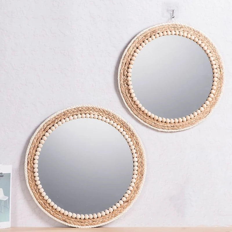 Nom du produit | Miroir mural rond en rotin style bohème décoration murale élégante |