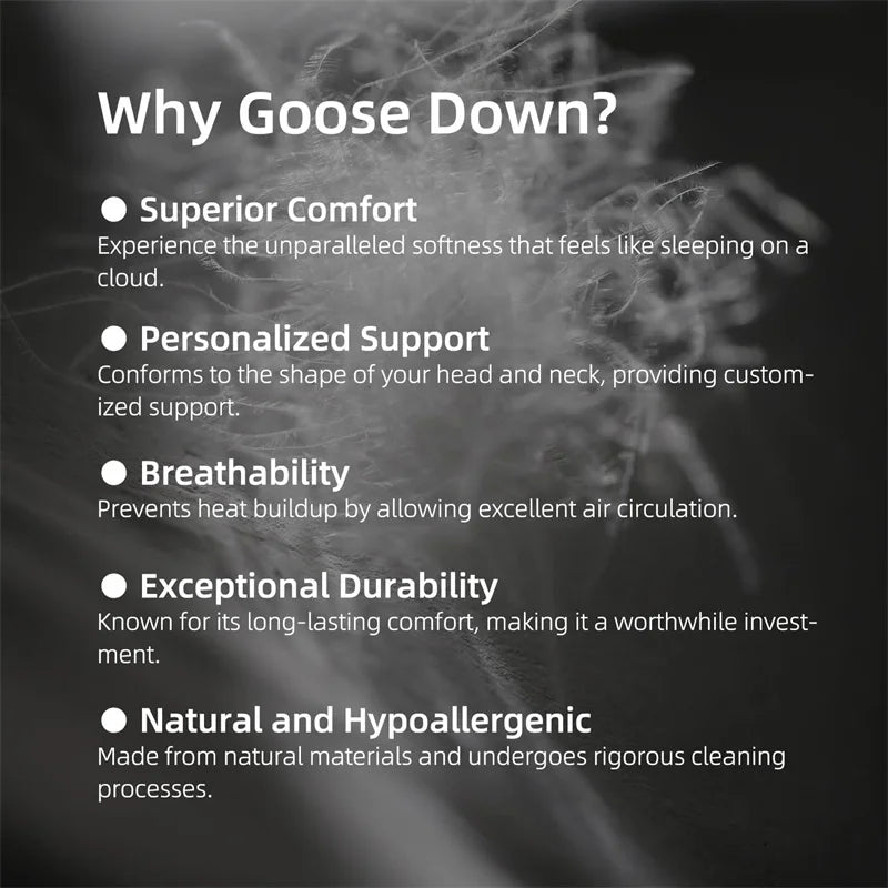 Faites le choix de la qualité, du confort et du style, et offrez-vous le sommeil dont vous méritez. Commandez dès maintenant votre oreiller en duvet d'oie moelleux et redécouvrez la joie d'une nuit paisible.