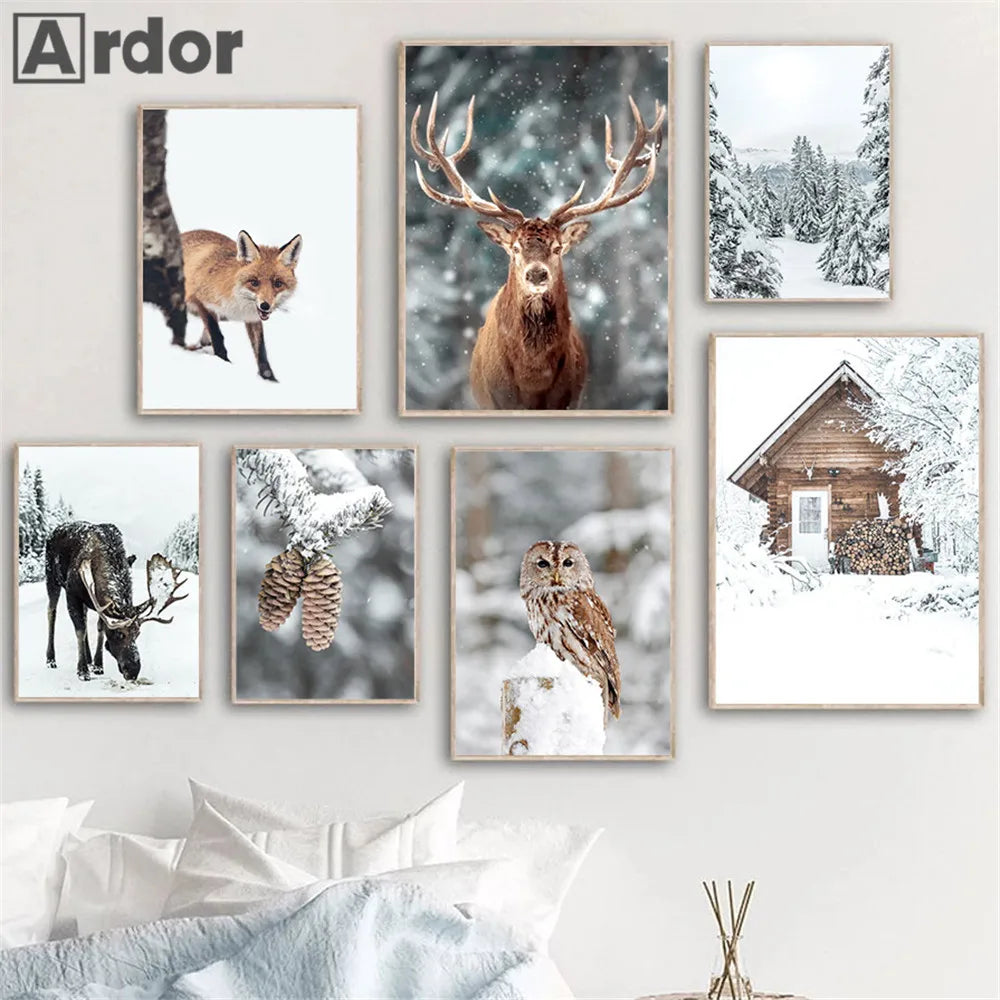 | Nom du produit | Peinture murale renard hibou cerf hiver forêt nordique |