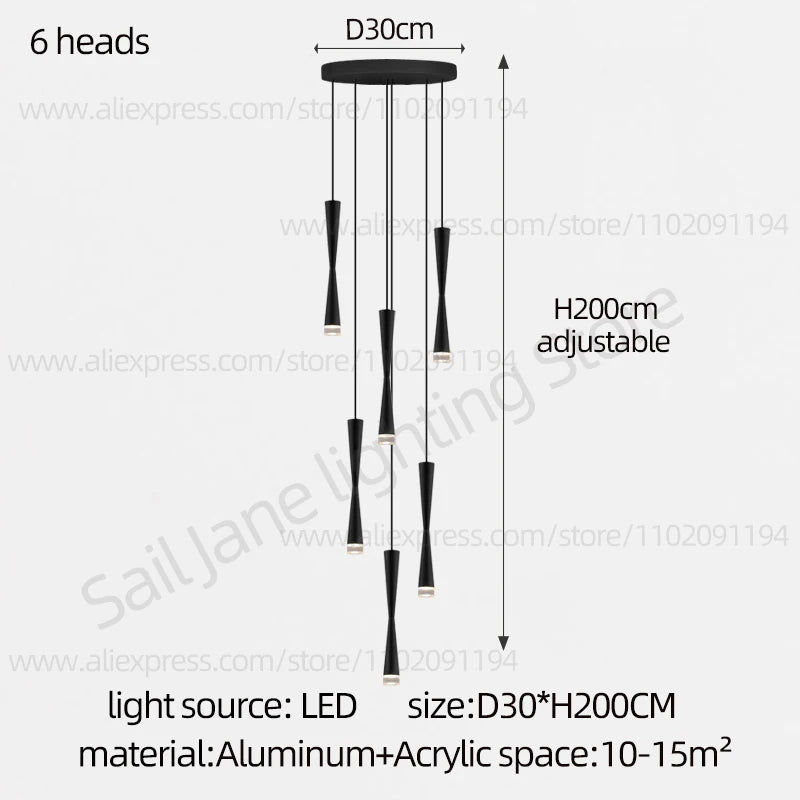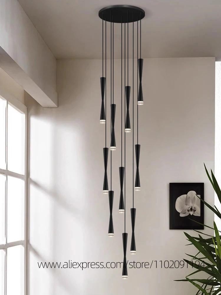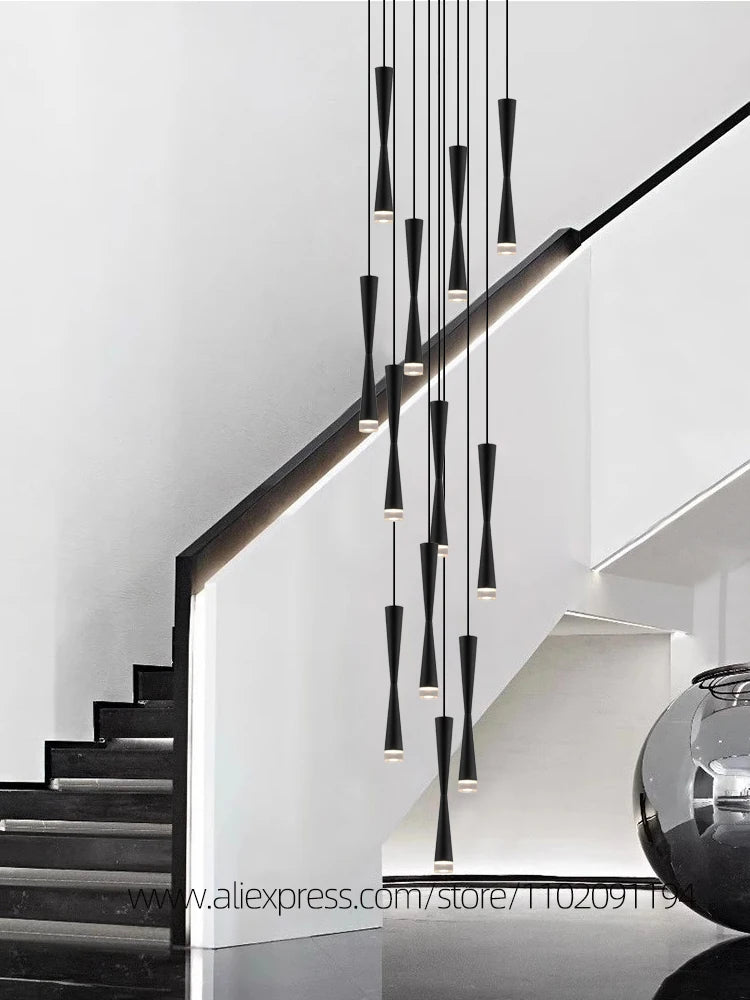 Suspension led duplex luxe escalier lustre moderne hôtel éclairage