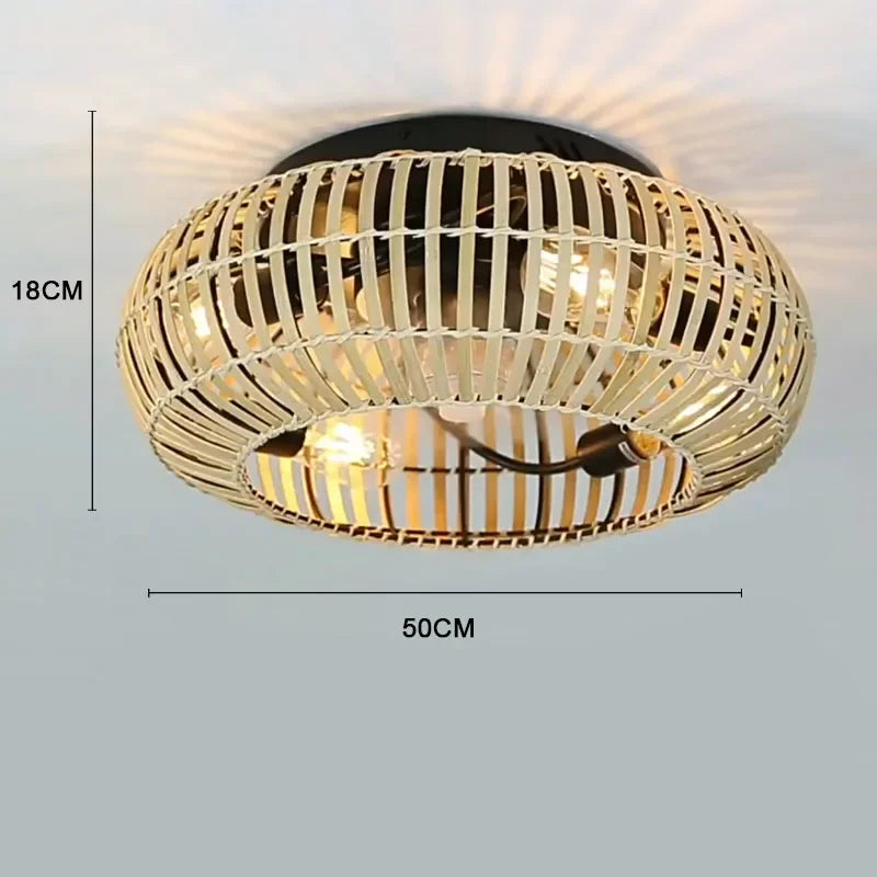 Plafonnier ventilateur silencieux en bambou avec lumière et télécom...