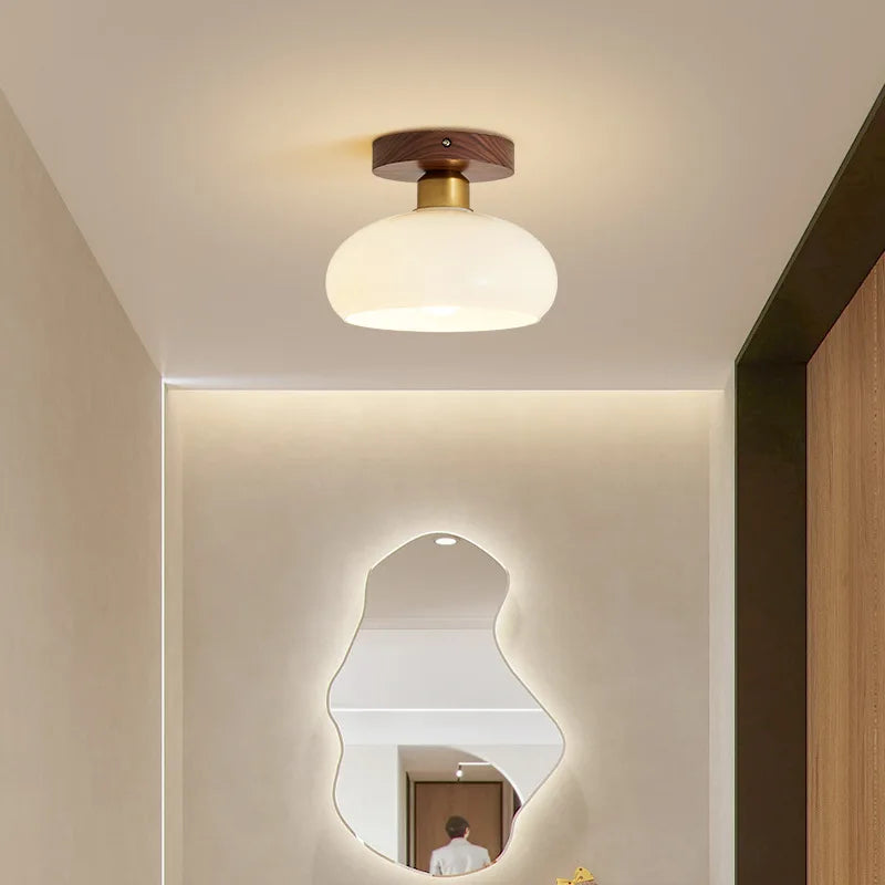 Plafonnier vintage simple en verre et noyer pour éclairage domestique
