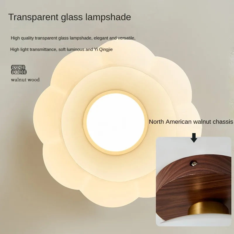 Nom du produit | Plafonnier vintage simple en verre et noyer pour éclairage domestique |