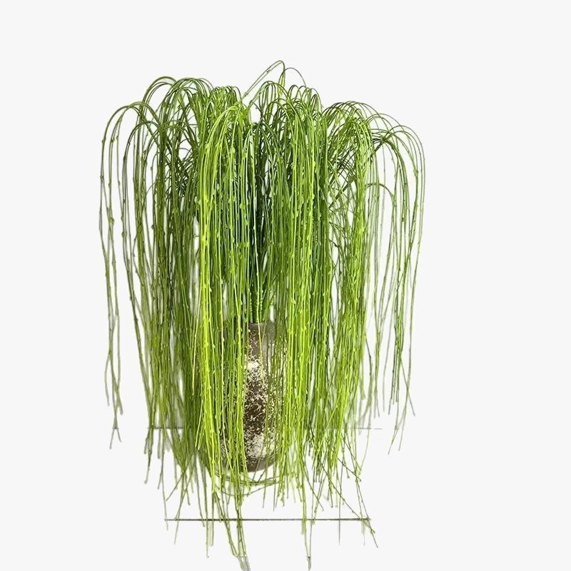 Le saule pleureur, avec ses longues branches tombantes, évoque une atmosphère apaisante et relaxante. Imaginez-le dans votre salon, où il peut devenir le point focal d’un coin lecture. Son allure délicate se marie à merveille avec des meubles en bois clair et des textiles doux, créant une ambiance chaleureuse et accueillante. Dans une chambre, il ajoute une note de sérénité, à placer près d'une fenêtre ou sur une commode, apportant une touche de verdure sans les tracas de l’arrosage.