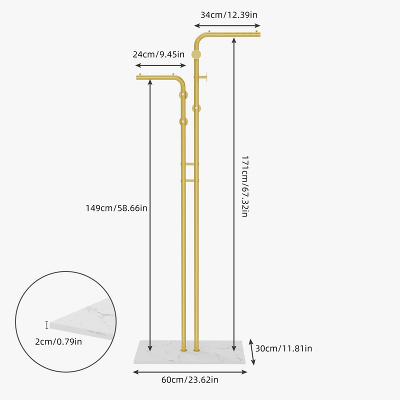 Nom du produit | Porte-manteau métallique avec base en marbre doré élégant |