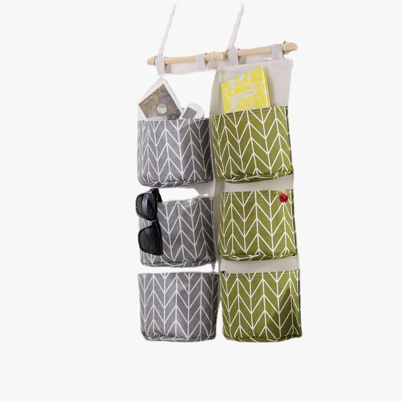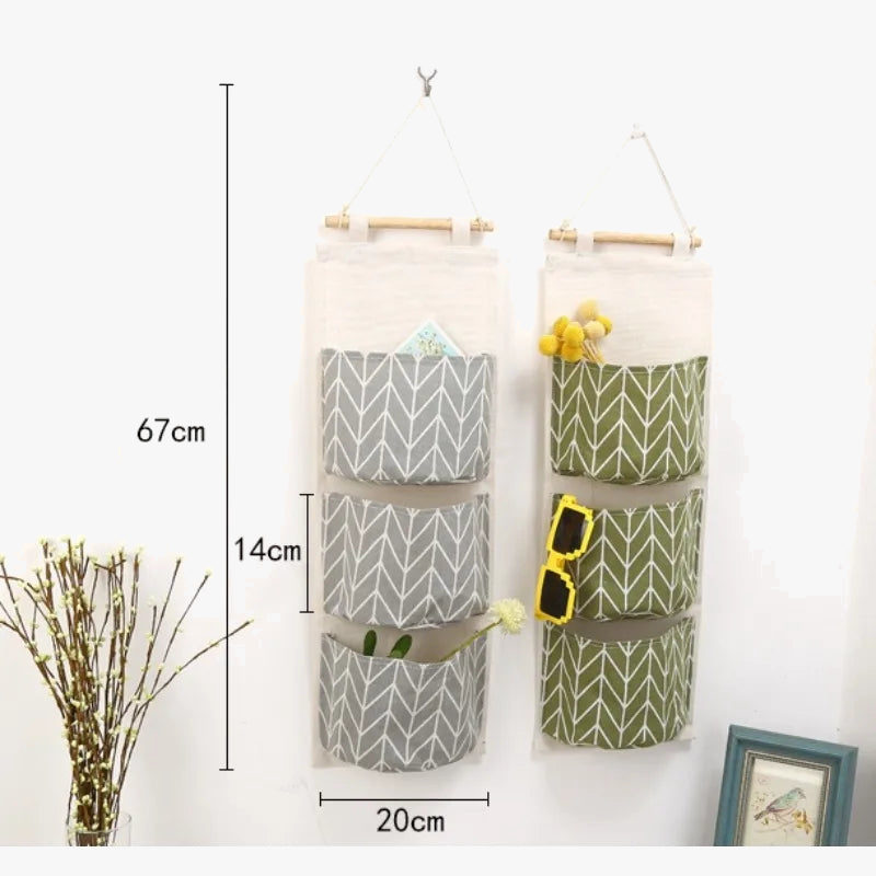 sac de rangement suspendu en coton et lin trois couches