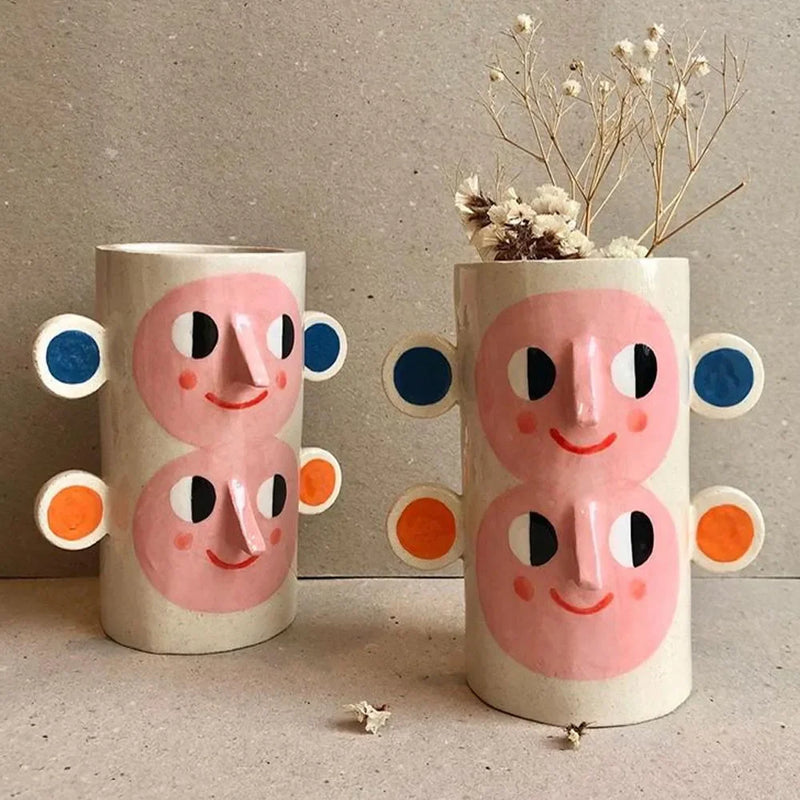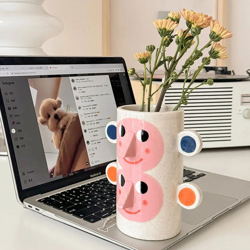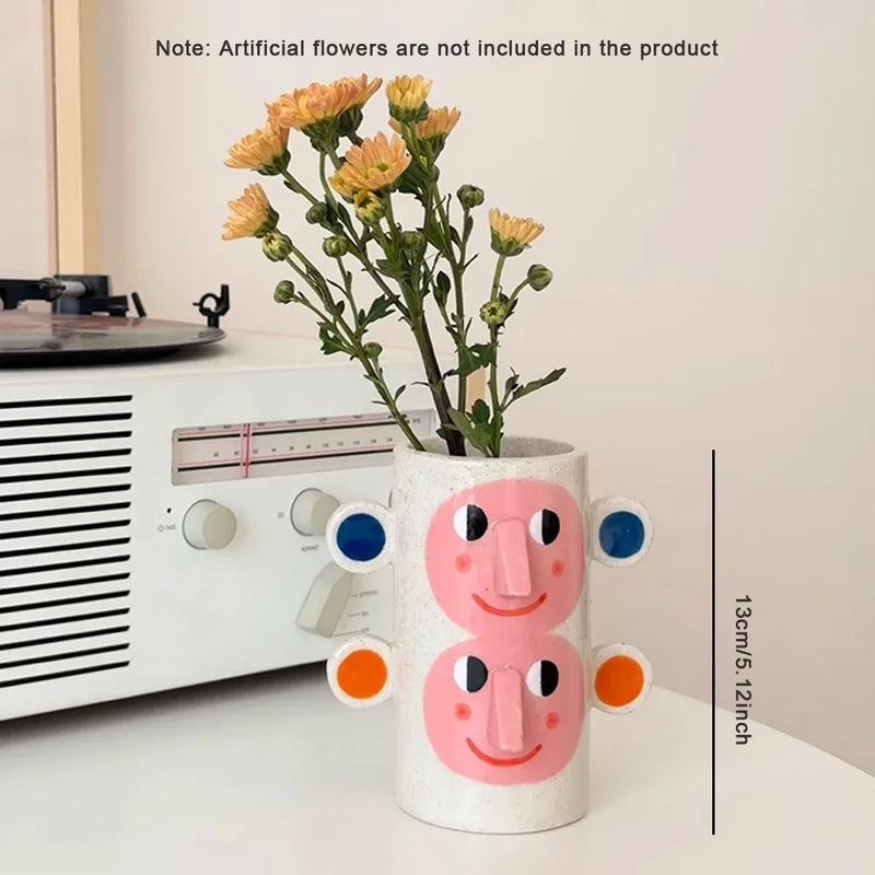 Nom du produit | Vase en céramique abstrait avec visage humain décoration florale |